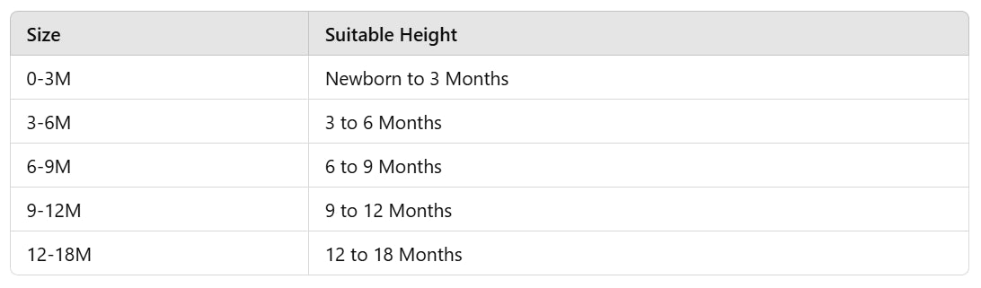 - Wählen Sie eine größere Größe, wenn die Maße Ihres Babys zwischen zwei Größen liegen.