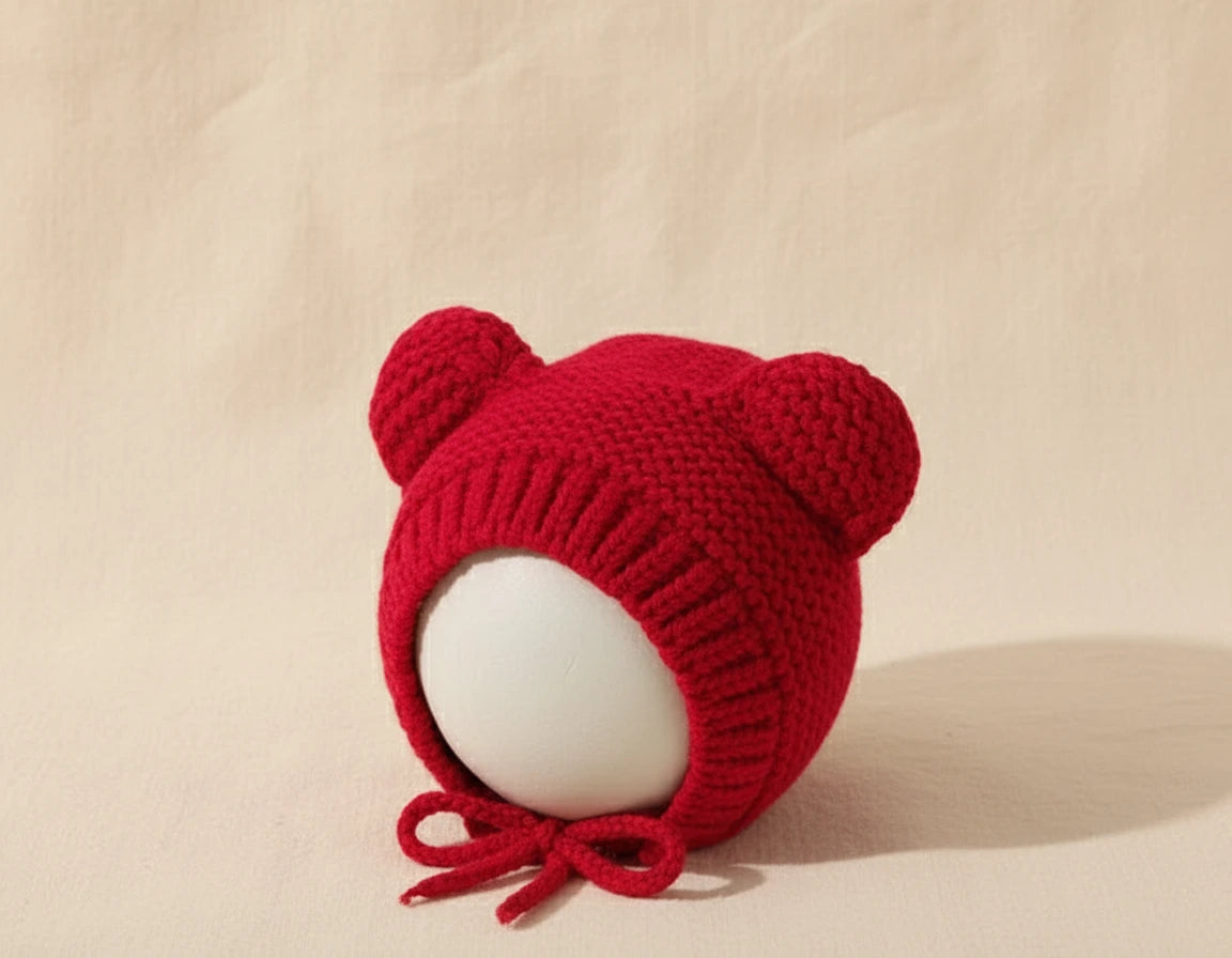 🧶 Kuschelige Babymütze aus reiner Wolle – Beige & Braun& Rot