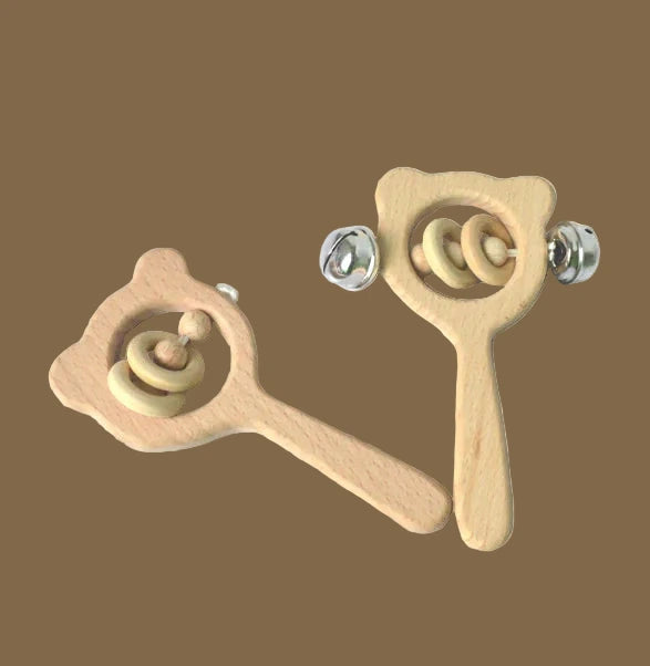 Holz Babyrassel mit Buchenholzgriff, sicher zum Kauen